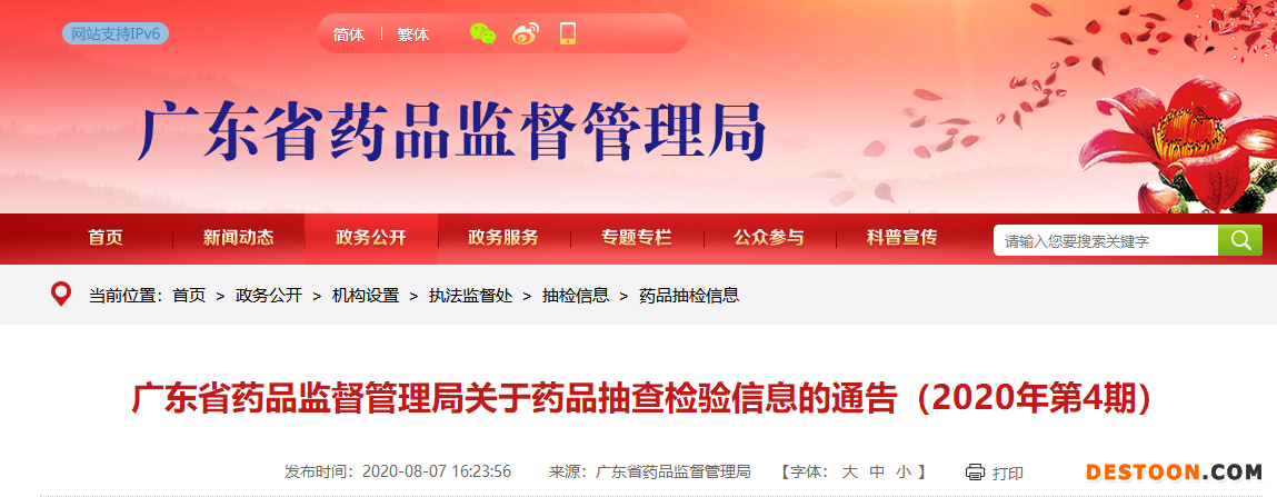 8月7日,廣東省藥監(jiān)局發(fā)布了“2020年第4期藥品抽查檢驗信息的通告”(以下簡稱“抽查通告”)。