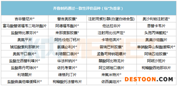 截至目前,齊魯制藥已有38個品種(66個品規(guī))通過或視同通過一致性評價,其中有22個品種為國內首家過評。鹽酸昂丹司瓊片、氨磺必利片、利培酮口崩片、華法林鈉片、注射用比伐蘆定、普瑞巴林膠囊、依西美坦片、奧沙利鉑注射液、頭孢丙烯顆粒、單硝酸異山梨酯緩釋片、阿瑞匹坦膠囊等11個品種為齊魯制藥獨家過評。