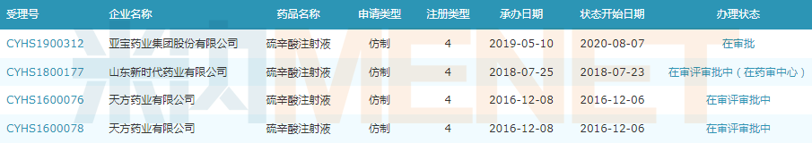 此外,亞寶藥業(yè)、新時代藥業(yè)、天方藥業(yè)等3家企業(yè)按仿制4類提交硫辛酸注射液上市申請,亞寶藥業(yè)的硫辛酸注射液注冊辦理狀態(tài)已變更為“在審批”,若順利獲批將成為該品種首家過評企業(yè)。