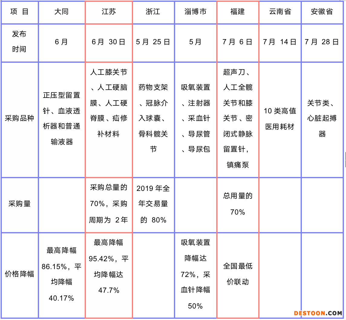 2020年3月中旬國家醫(yī)保局曾明確要求要在未來6個月內(即9月中旬前),對11個試點省份(江蘇、安徽、福建、青海、上海、浙江、湖南、重慶、四川、陜西和寧夏)開展高值耗材帶量采購工作,其余23個省份及城市也要積極跟進。