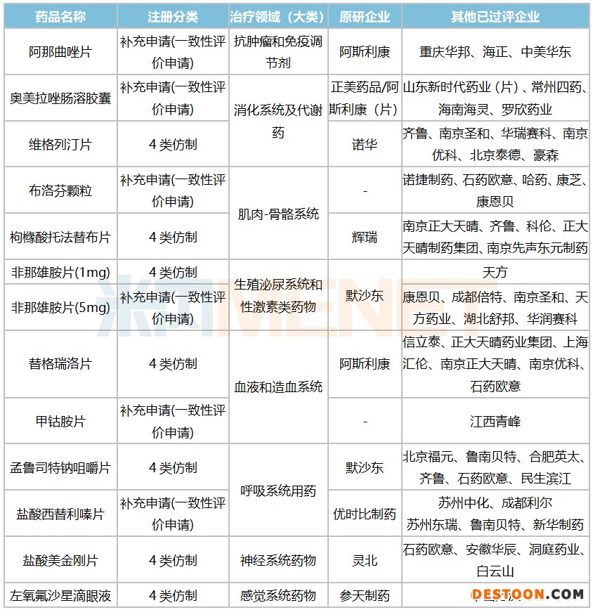 揚(yáng)子江進(jìn)入第三輪集采目錄的產(chǎn)品有13個(gè)(非那雄胺片按不同適應(yīng)癥分開報(bào)價(jià),因此本文按2個(gè)產(chǎn)品進(jìn)行分析),其中按新分類獲批的涉及維格列汀片、枸櫞酸托法替布片、非那雄胺片(1mg)、替格瑞洛片、孟魯司特鈉咀嚼片、鹽酸美金剛片、左氧氟沙星滴眼液,這7個(gè)新產(chǎn)品早前處于市場(chǎng)空白,若成功中標(biāo),則能迅速進(jìn)入市場(chǎng)。