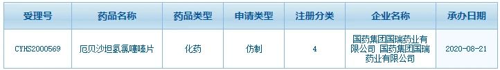 圖1:國藥集團(tuán)國瑞藥業(yè)的厄貝沙坦氫氯噻嗪片注冊情況
