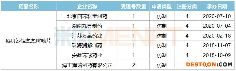 表1:2018年至今在審的厄貝沙坦氫氯噻嗪仿制上市申請情況