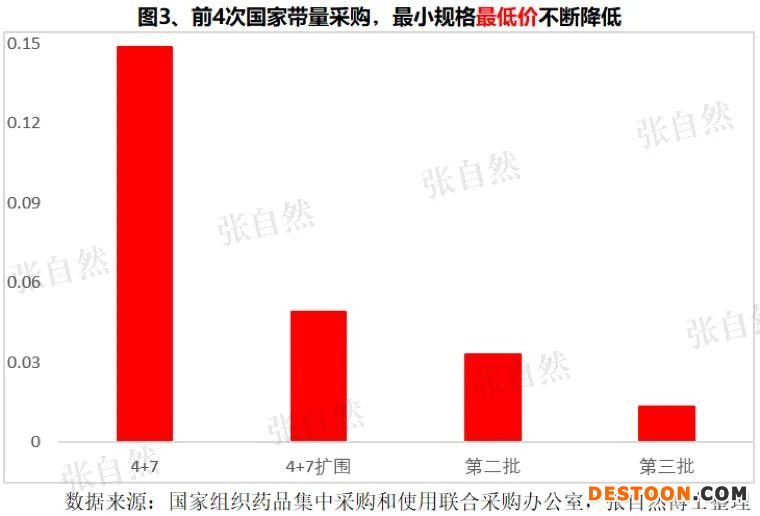 單一品種的最大降價幅度再次刷新,本次降幅最大的是石藥的美金剛,降幅高達98.72%,超過前3次國采最高降幅96%的紀錄(“4+7”中選的富馬酸替諾福韋酯二吡呋酯片,成都倍特),更高過“4+7”擴圍時的78%(阿托伐他汀鈣10mg,齊魯海南)和第二批的93%(鹽酸左西替利嗪片5mg,湖南九典),且降本次國采降幅超過90%的產(chǎn)品多達30多個。