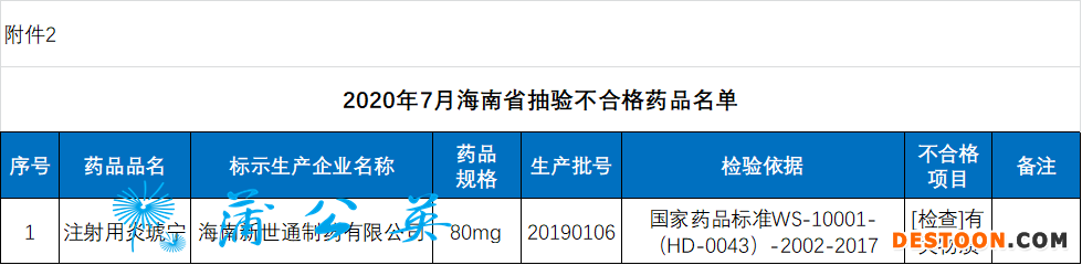 2.2020年7月海南省抽驗(yàn)不合格藥品名單