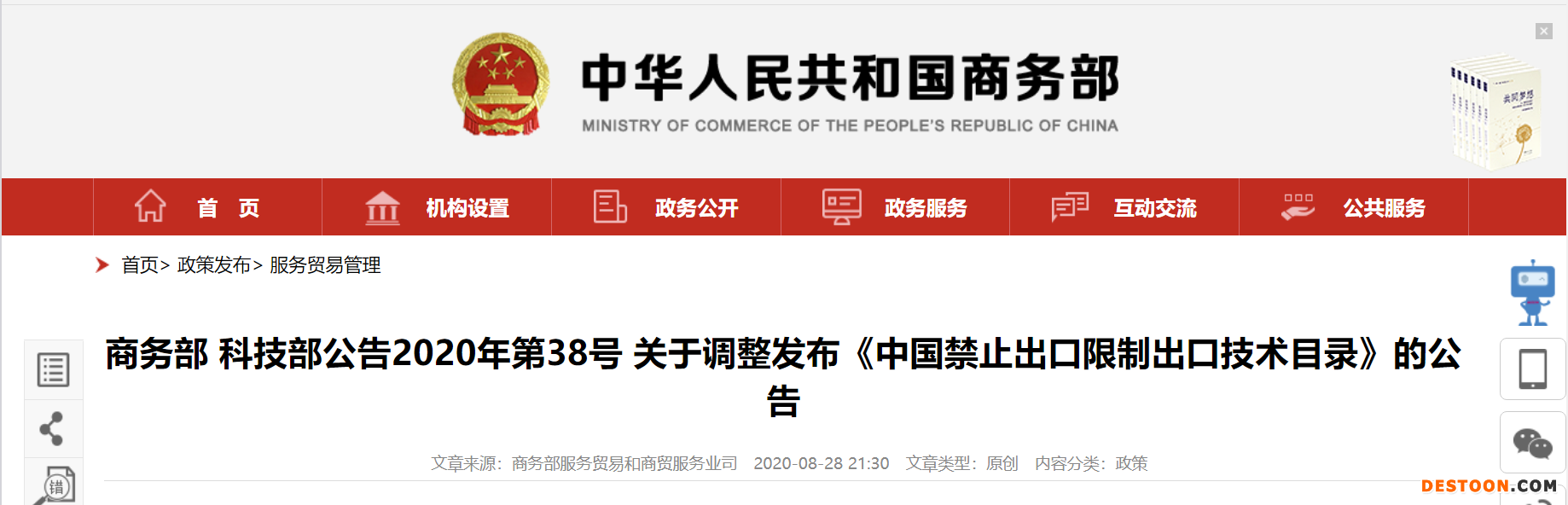 9月1日訊 8月28日,商務(wù)部、科技部調(diào)整發(fā)布《中國(guó)禁止出口限制出口技術(shù)目錄》(商務(wù)部科技部公告2020年第38號(hào),以下簡(jiǎn)稱《目錄》)。