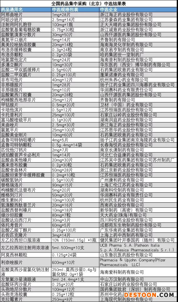 申報(bào)時(shí)間為:2020年9月4日-9月11日。第三批國家集采北京中選結(jié)果如下: