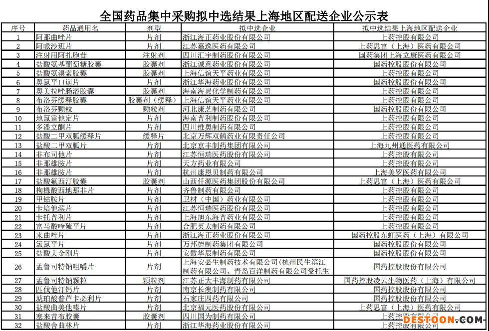 此外,上海陽光醫(yī)藥采購網(wǎng)在8月21日發(fā)布了《全國藥品集中采購擬中選結(jié)果上海地區(qū)配送企業(yè)公示》。