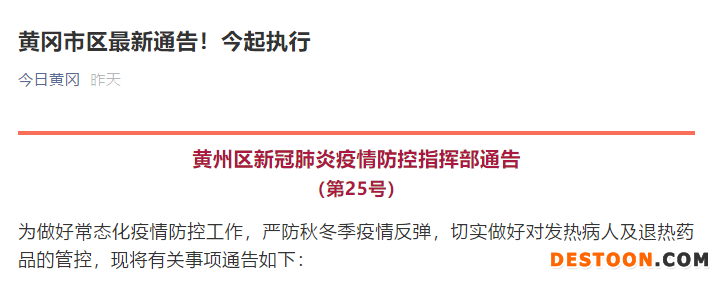 為做好常態(tài)化疫情防控工作,嚴防秋冬季疫情反彈,切實做好對發(fā)熱病人及退熱藥品的管控,黃州區(qū)新冠肺炎疫情防控指揮部發(fā)布了最新通告。該通告自2020年9月4日起執(zhí)行。