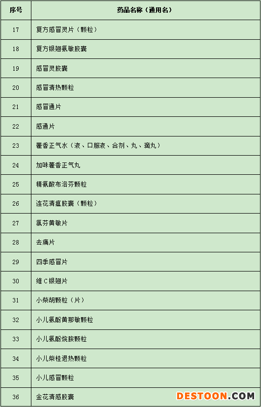 梳理發(fā)現(xiàn),目錄內(nèi)共涵蓋43種藥,包括連花清瘟膠囊(顆粒)、藿香正氣水(液、口服液、合劑、丸、滴丸)、布洛芬片、安宮牛黃丸、安乃近片、復(fù)方感冒靈片(顆粒)、小兒感冒顆粒、維C銀翹片、感冒通片等。