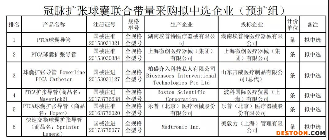 后擴(kuò)組冠脈擴(kuò)張球囊擬中選企業(yè)包括湖南埃普特、賽諾醫(yī)療、上海微創(chuàng)、波科、樂(lè)普、雅培。