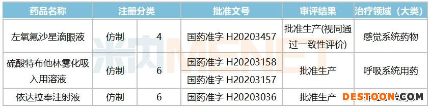9月3日,NMPA發(fā)布最新一批藥品批準(zhǔn)文件信息,四川美大康華康藥業(yè)的左氧氟沙星滴眼液4類仿制獲批上市并視同過評,2020年至今,該公司已有3大產(chǎn)品獲批,涉及滴眼劑、吸入劑及注射劑。9月4日,四川美大康華康藥業(yè)的多索茶堿注射液4類仿制上市申請獲得CDE受理,正式對這個10億注射劑品種發(fā)起進攻。