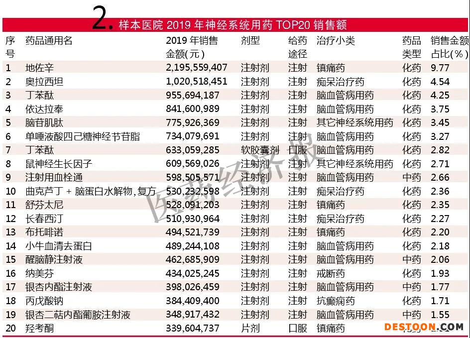 樣本醫(yī)院2019年神經(jīng)系統(tǒng)用藥Top 20銷售額