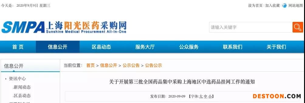 《通知》稱,為貫徹落實(shí)第三批國家組織藥品集中采購和使用工作要求,現(xiàn)開通全國藥品集中采購上海地區(qū)中選藥品掛網(wǎng)通道。