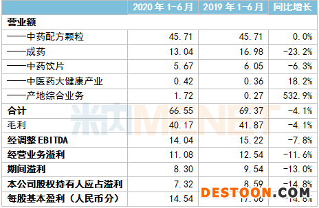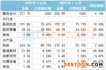 國藥集團(tuán)旗下6家上市公司2020年上半年業(yè)績情況(單位:億元)