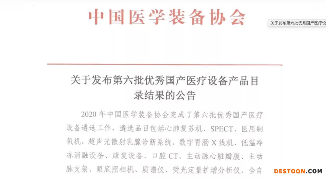 從2014年5月開始,為推進(jìn)國產(chǎn)醫(yī)療設(shè)備發(fā)展應(yīng)用,促進(jìn)相關(guān)產(chǎn)業(yè)轉(zhuǎn)型升級、拉動經(jīng)濟(jì)增長,降低醫(yī)療成本,衛(wèi)健委(原衛(wèi)計(jì)委)委托中國醫(yī)學(xué)裝備協(xié)會啟動第一批優(yōu)秀國產(chǎn)醫(yī)療設(shè)備產(chǎn)品遴選工作。