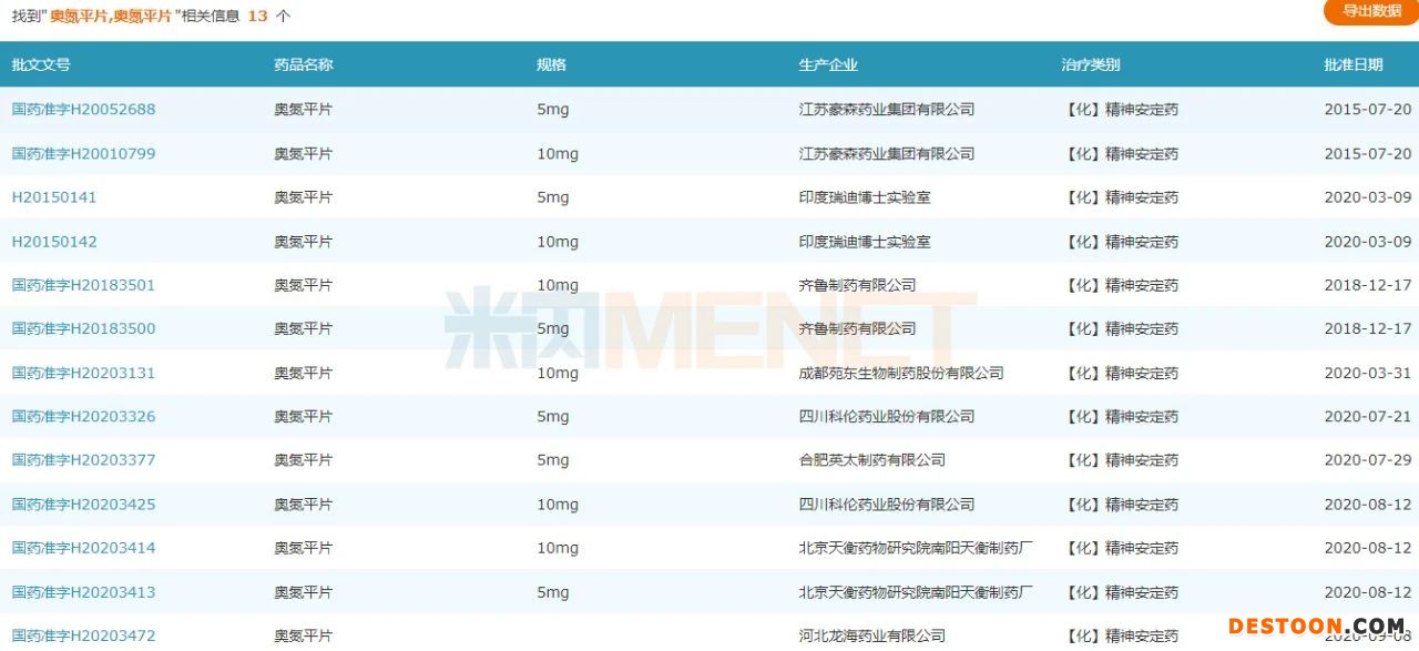 截至目前,奧氮平片共有10家生產(chǎn)企業(yè),其中,江蘇豪森藥業(yè)集團(tuán)、齊魯制藥、四川科倫藥業(yè)、成都苑東生物制藥等8家是國(guó)內(nèi)企業(yè)。