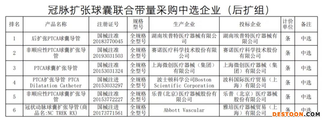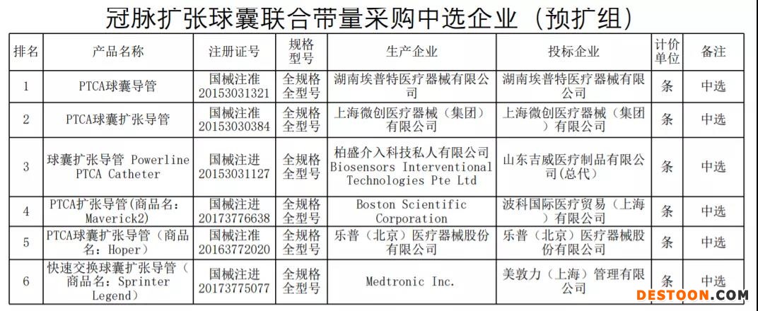 預(yù)擴組冠脈擴張球囊中選企業(yè)包括湖南埃普特、上海微創(chuàng)、吉威醫(yī)療、波科、樂普、美敦力。