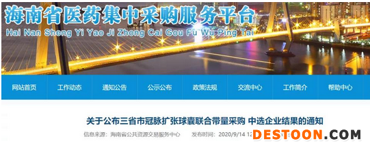 9月16日訊 9月14日,海南省醫(yī)藥集中采購服務(wù)平臺發(fā)布《關(guān)于公布三省市冠脈擴張球囊聯(lián)合帶量采購中選企業(yè)結(jié)果的通知》,公布貴州省、重慶市、海南省三省市冠脈球囊聯(lián)合集中帶量采購中選企業(yè)結(jié)果。