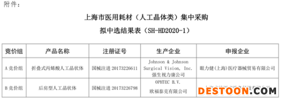 圖|上海市醫(yī)用耗材(人工晶體類)集中采購擬中選結(jié)果