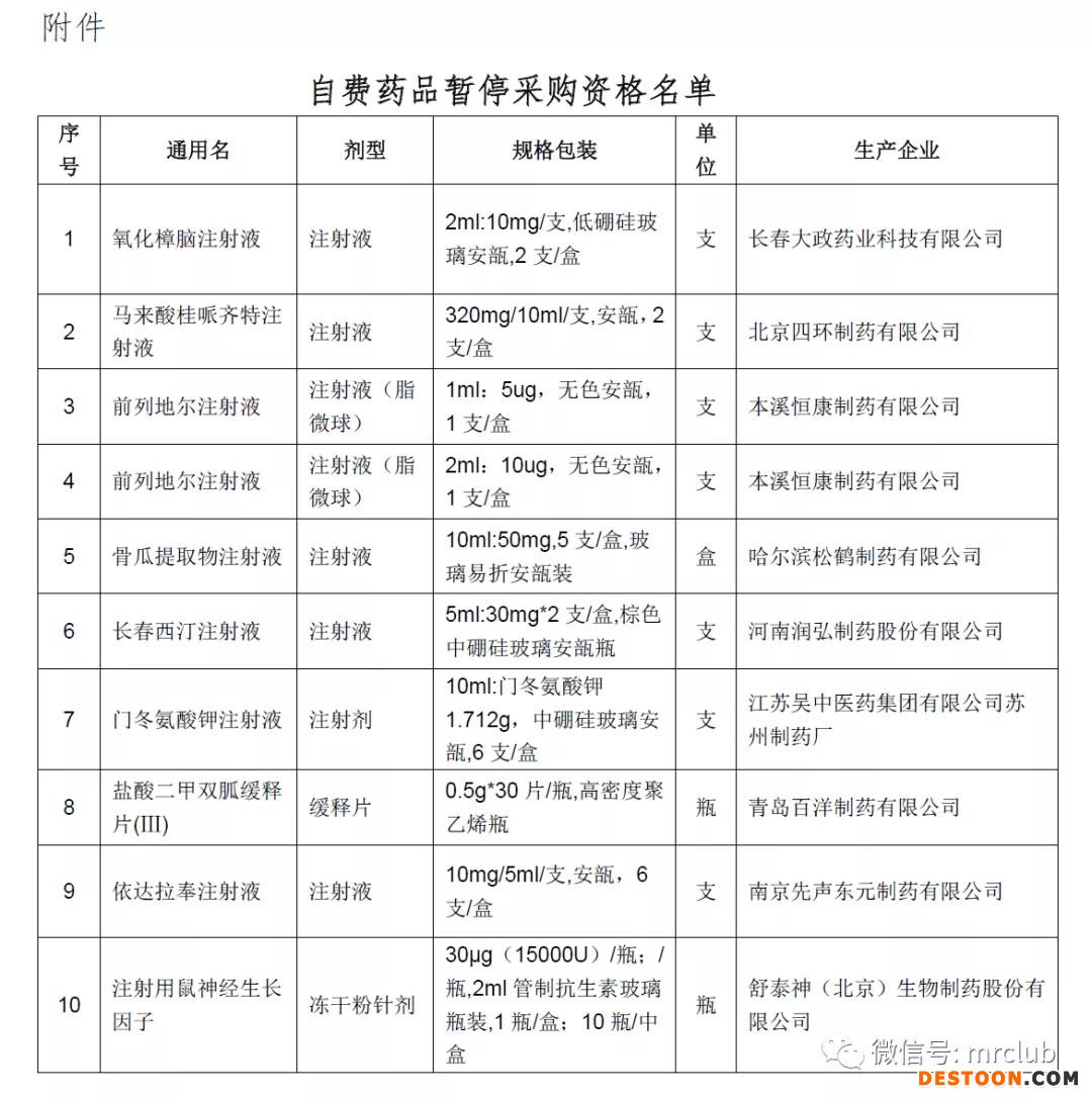 9月18日訊 9月15日,上海市醫(yī)藥集中招標采購事務管理所發(fā)布通知,暫停馬來酸桂哌齊特、依達拉奉、注射用鼠神經(jīng)生長因子等 10 個自費藥品掛網(wǎng)采購資格,為期一年。