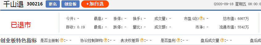 9月15日,千山退(千山藥機(jī))發(fā)布公告稱,公司股票于2020年8月5日進(jìn)入退市整理期,截至9月15日已滿30個(gè)交易日,退市整理期已結(jié)束。公司股票已被深交所決定終止上市,將在9月16號被摘牌。千山藥機(jī)從進(jìn)入退市整理期股價(jià)開始連續(xù)29個(gè)一字跌停,最終股價(jià)定格在0.19元,與歷史高價(jià)相比跌幅達(dá)99.75%,創(chuàng)下A股最大下跌紀(jì)錄。據(jù)了解,千山藥機(jī)在2015-2016年年報(bào)中存在虛減應(yīng)收賬款、壞賬準(zhǔn)備、虛增利潤等情形,兩年虛增利潤合計(jì)超4億元;2017年存在信披違規(guī)等情形,近三年公司凈利潤虧損合計(jì)超過35億元。截至2020年5月,千山藥機(jī)股東人數(shù)4.82萬。