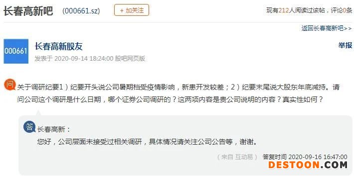 目前,對于長春高新股價(jià)較大波動主要有兩種觀點(diǎn)。一是,媒體報(bào)道中調(diào)研事件公司高管給出的業(yè)績指引不及預(yù)期,以及未來存在高管減持的安排,引發(fā)了投資者的擔(dān)憂情緒;二是,長春高新此前漲幅過高,資金抱團(tuán)意愿松散。9月16日,長春高新在互動平臺表示,公司層面未接受過相關(guān)調(diào)研,具體情況請關(guān)注公司公告等。據(jù)統(tǒng)計(jì),14-16日,在互動平臺與此次調(diào)研事件相關(guān)的提問就有多達(dá)近30條。