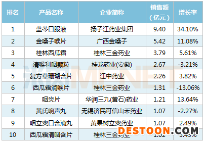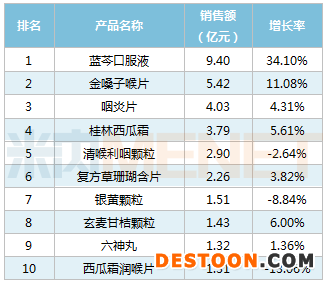 咽喉中成藥TOP10出爐!6個(gè)獨(dú)家品種霸屏