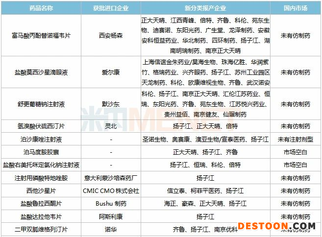 揚子江在審的63個品種中有21個在國內市場暫未有首仿(含劑型首仿)獲批上市。全球銷售額較高的品種有泊馬度胺膠囊,該產(chǎn)品具有多種作用機制,是多發(fā)性骨髓瘤治療領域的重磅免疫調節(jié)劑,2019年全球銷售額達25.25億美元,原研還未獲批進口,正大天晴、揚子江、齊魯3家企業(yè)以新分類報產(chǎn);舒更葡糖鈉注射液是全球首個用于逆轉神經(jīng)肌肉阻滯劑的選擇性松弛拮抗劑,2019年全球銷售額達11.31億美元,原研已獲批進口,科倫、揚子江、東陽光藥、齊魯?shù)?2家企業(yè)搶首仿。