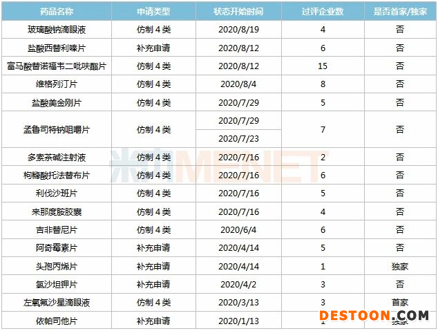 托西酸伊菲替尼片屬于替尼類小分子藥物,為特殊審評品種,注射用鹽酸頭孢他美為重大專項及特殊審評品種,YZJ-2440馬來酸鹽片、YZJ-1495鹽酸鹽膠囊均為2020年獲批臨床的新藥,作用靶點暫時未知。