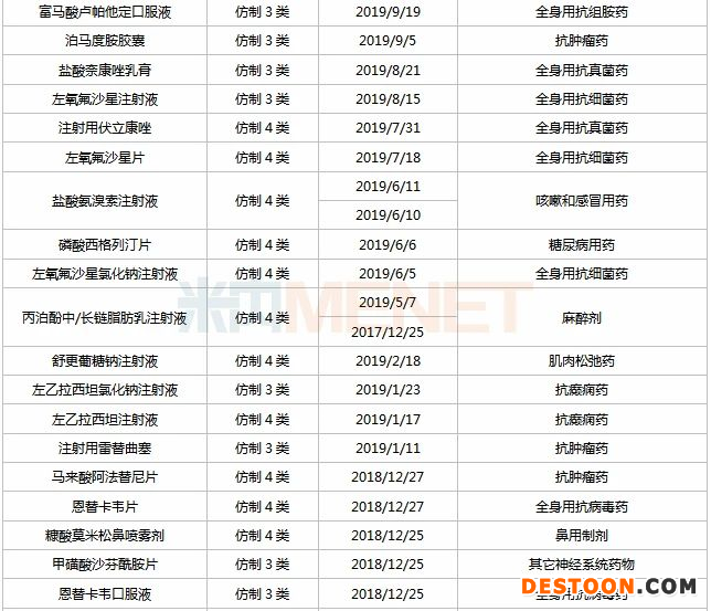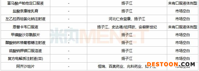 11個品種由揚子江首家或獨家以新分類報產(chǎn),獲得首仿的幾率比較大。其中氫溴酸伏硫西汀片、鹽酸右美托咪定氯化鈉注射液、恩替卡韋口服液3個品種由揚子江首家以新分類報產(chǎn);注射用磷酸特地唑胺、鹽酸達拉他韋片、富馬酸盧帕他定口服液、鹽酸奈康唑乳膏、甲磺酸沙芬酰胺片、復方電解質注射液(Ⅲ)、醋酸鈉林格葡萄糖注射液、硫酸鈉鉀鎂口服溶液8個品種由揚子江獨家以新分類報產(chǎn)。