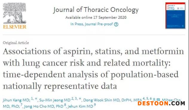 9月23日訊 近日,來自韓國(guó)研究團(tuán)隊(duì)一項(xiàng)研究結(jié)果顯示:對(duì)超過73萬人數(shù)據(jù)的分析發(fā)現(xiàn),服用阿司匹林、他汀類藥物和二甲雙胍,都與肺癌風(fēng)險(xiǎn)顯著負(fù)相關(guān),同時(shí)服藥者風(fēng)險(xiǎn)更低。這項(xiàng)研究最新發(fā)表在知名醫(yī)學(xué)期刊《胸部腫瘤學(xué)雜志》(Journal of Thoracic Oncology,JTO)。