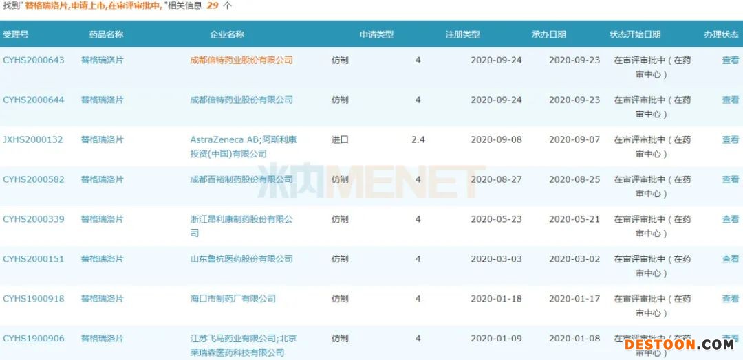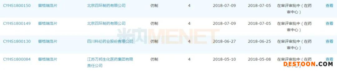 9月27日訊 9月24日,CDE官網(wǎng)顯示,成都倍特藥業(yè)的替格瑞洛片以仿制4類申請(qǐng)上市獲得受理。米內(nèi)網(wǎng)數(shù)據(jù)顯示,2019年在中國(guó)公立醫(yī)療機(jī)構(gòu)終端替格瑞洛片銷售額超過(guò)15億元,其中,阿斯利康的市場(chǎng)份額占比超過(guò)95%。國(guó)內(nèi)已有石藥集團(tuán)歐意藥業(yè)、南京正大天晴、浙江海正藥業(yè)、揚(yáng)子江藥業(yè)集團(tuán)廣州海瑞藥業(yè)等8家仿制藥企業(yè),且均已過(guò)評(píng)。此外,還有四川科倫藥業(yè)、廣東東陽(yáng)光藥業(yè)、山東羅欣藥業(yè)等超過(guò)20家企業(yè)申報(bào)上市在審評(píng)審批中(在藥審中心)。