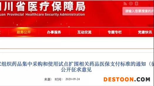 9月28日訊 9月24日,四川醫(yī)保局發(fā)布《關于印發(fā)國家組織藥品集中采購和使用試點擴圍相關藥品醫(yī)保支付標準的通知(征求意見稿)》公開征求意見。