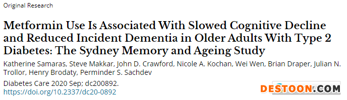 原始研究在1037名無癡呆癥的70-90歲老年人中開展,其中有123名受試者患有2型糖尿病,其中67人接受了二甲雙胍治療。