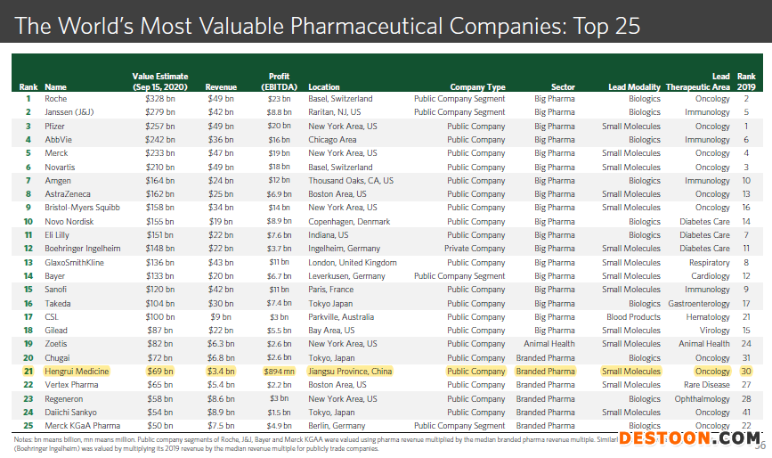 9月29日訊 2012年,全球投行Torreya開始對全球30000家制藥公司進行研究。2020年,該機構(gòu)公布了《全球1000強藥企報告》,該報告按市值對1000家藥企進行了排名,這1000公司年度總收入超過1.2萬億美元。