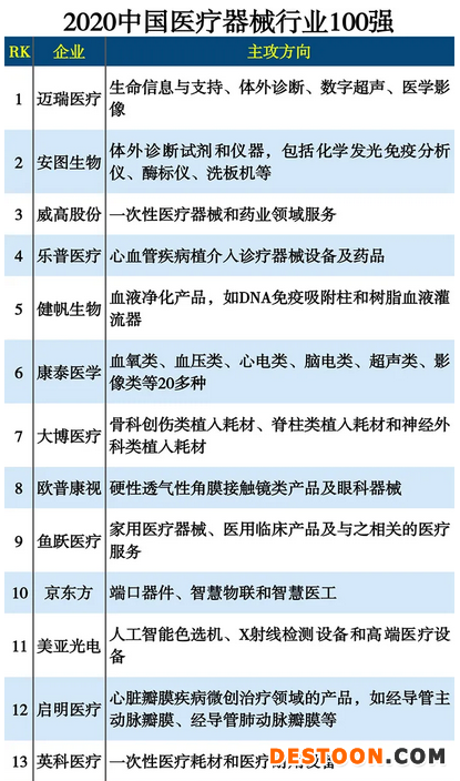 最新!中國醫(yī)療器械企業(yè)100強公布(附榜單)