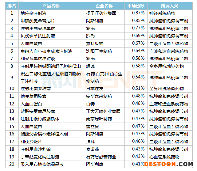 品牌TOP20!揚子江“突圍而出”,抗腫瘤和免疫調(diào)節(jié)劑占半壁江山