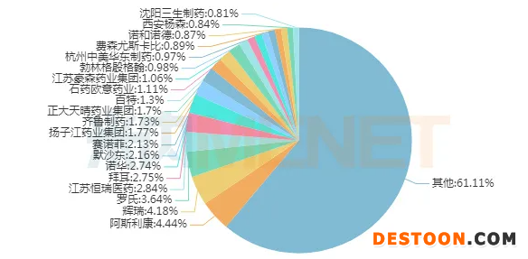 從TOP20廠家來看,國內(nèi)藥企有恒瑞、揚子江、齊魯、正大天晴、石藥歐意藥業(yè)等8家。而在前十中,外資藥企占據(jù)7個席位,國內(nèi)藥企僅有恒瑞、揚子江、齊魯3家。