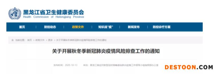 10月12日,黑龍江省應對新型冠狀病毒感染肺炎疫情工作領導小組指揮部辦公室下發(fā)了《關于開展秋冬季新冠肺炎疫情風險排查工作的通知》(以下簡稱《通知》)。