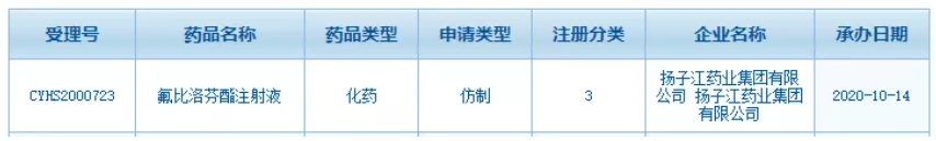 圖1:揚子江藥業(yè)集團的氟比洛芬酯注射液注冊情況
