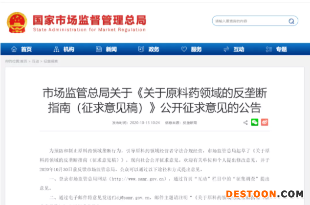 10月16日訊 10月13日,國家市場監(jiān)管總局發(fā)布《關(guān)于原料藥領(lǐng)域的反壟斷指南(征求意見稿)》(下稱《指南》),向社會公開征求意見。希望借此預(yù)防和制止原料藥領(lǐng)域壟斷行為,引導(dǎo)原料藥領(lǐng)域經(jīng)營者守法合規(guī)經(jīng)營。但對于這份指導(dǎo)意見的價值有多大,業(yè)內(nèi)有不同的聲音。