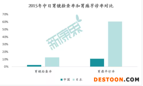 早診早治是提高癌癥生存率的重要手段,然而目前我國(guó)內(nèi)國(guó)民癌癥早期檢查意識(shí)差,內(nèi)窺鏡檢查使用較少,導(dǎo)致癌癥早期診斷率偏低,病發(fā)率及死亡率遠(yuǎn)高于發(fā)達(dá)國(guó)家。以胃癌為例,2015年,日本有約12.5%的人參與了胃鏡檢查,而我國(guó)只有不到3%;日本胃癌早診率高達(dá)60%,而我國(guó)僅有10%左右。