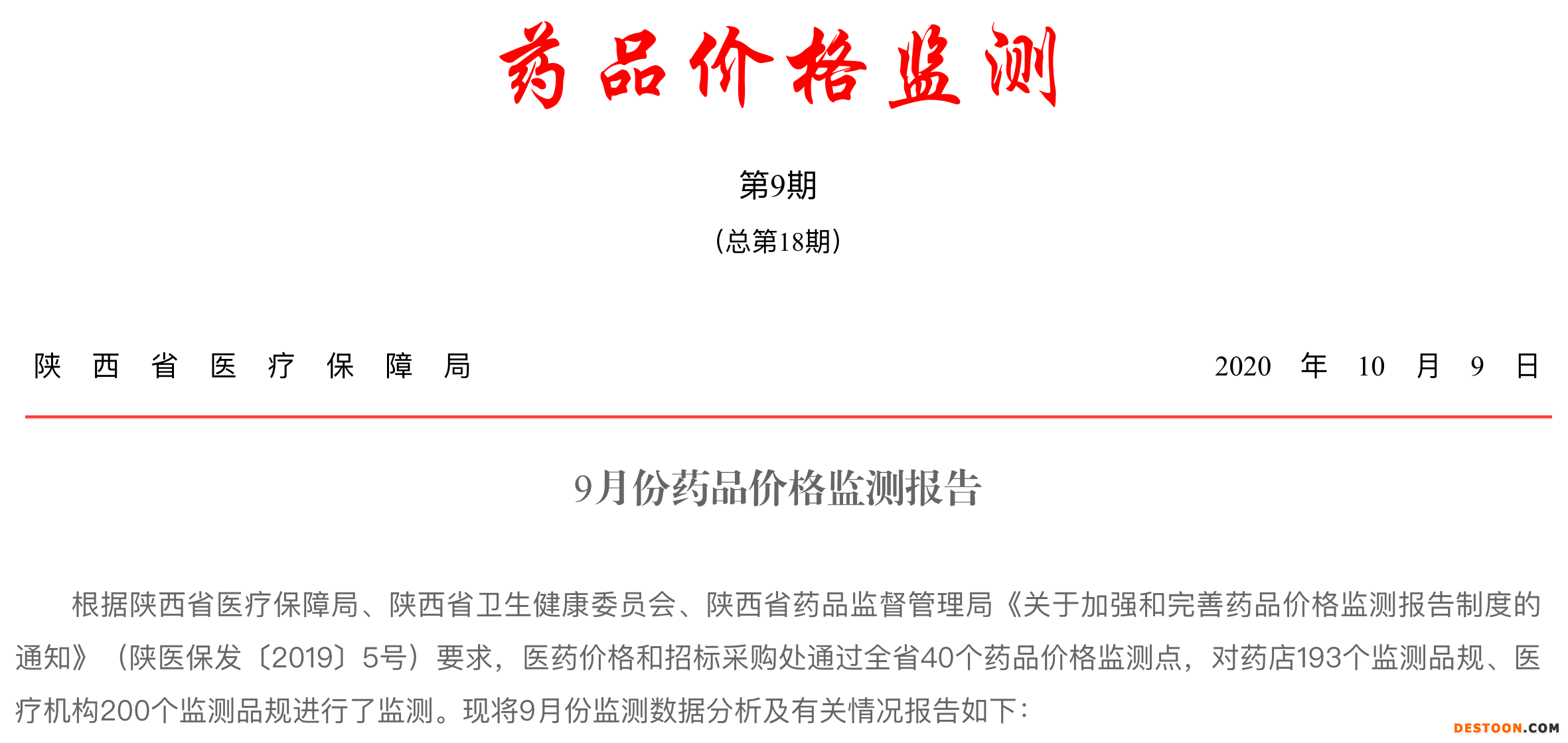 為進(jìn)一步做好藥品價(jià)格監(jiān)測(cè)工作,陜西省醫(yī)保局、陜西省衛(wèi)健委、陜西省藥監(jiān)局三部委在2019年4月發(fā)布《關(guān)于加強(qiáng)和完善藥品價(jià)格監(jiān)測(cè)報(bào)告制度的通知》,旨在通過(guò)建立健全藥品價(jià)格監(jiān)測(cè)體系和加強(qiáng)藥品價(jià)格監(jiān)測(cè)數(shù)據(jù)分析,來(lái)引導(dǎo)市場(chǎng)價(jià)格合理形成,維護(hù)市場(chǎng)價(jià)格秩序。