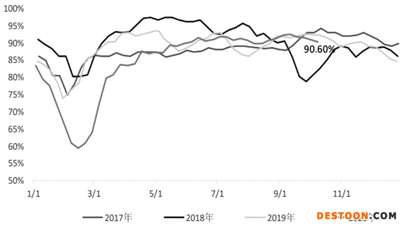圖為聚酯行業(yè)開工負(fù)荷 (化工網(wǎng))