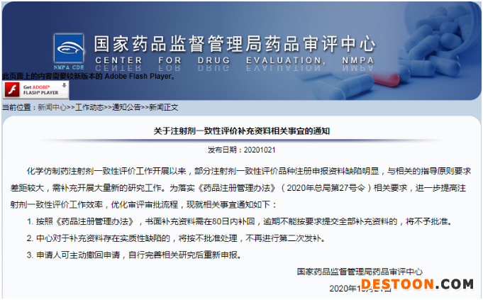 10月22日訊 10月21日,CDE發(fā)布《關(guān)于注射劑一致性評(píng)價(jià)補(bǔ)充資料相關(guān)事宜的通知》(以下稱(chēng)《通知》),指出化學(xué)仿制藥注射劑一致性評(píng)價(jià)工作開(kāi)展以來(lái),部分注射劑一致性評(píng)價(jià)品種注冊(cè)申報(bào)資料缺陷明顯,與相關(guān)的指導(dǎo)原則要求差距較大,需補(bǔ)充開(kāi)展大量新的研究工作。