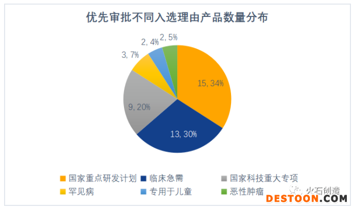 “列入國家重點研發(fā)計劃”成為最主要入選理由。優(yōu)先審批主要是為了加快“診斷或者治療罕見病、惡性腫瘤、老年人特有和多發(fā)疾病、專用于兒童、臨床急需等醫(yī)療器械,以及列入國家科技重大專項或國家重點研發(fā)計劃的”醫(yī)療器械審評審批,從公示產(chǎn)品入選理由來看,“列入國家重點研發(fā)計劃”成為目前最主要的入選理由,其次是“臨床急需”和“列入國家科技重大專項”。