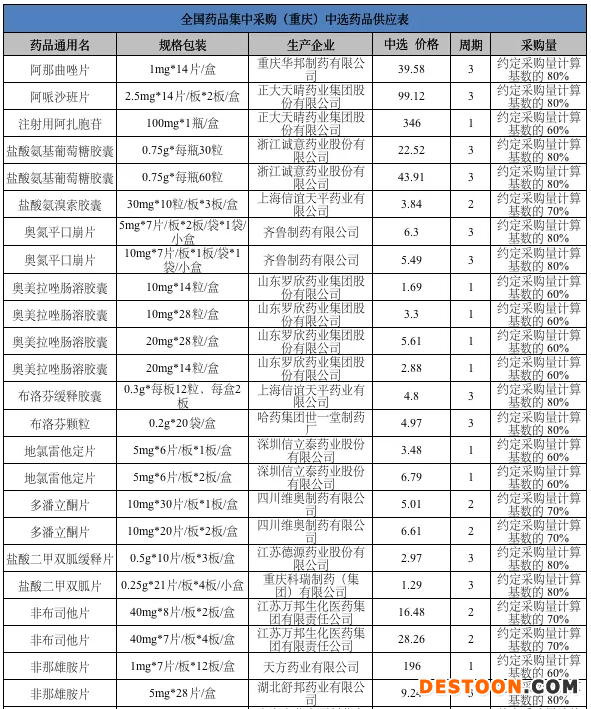 根據(jù)通知,重慶將于2020年11月1日開始執(zhí)行第三批國采中選結(jié)果。