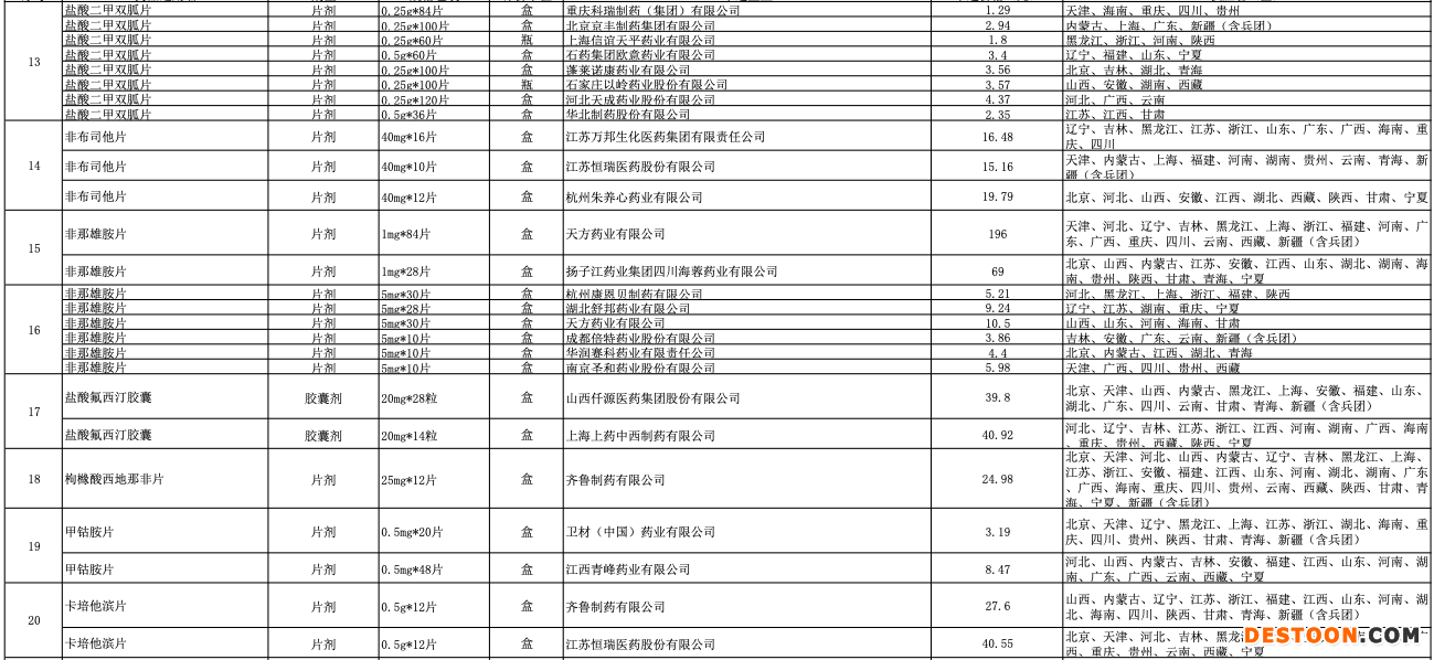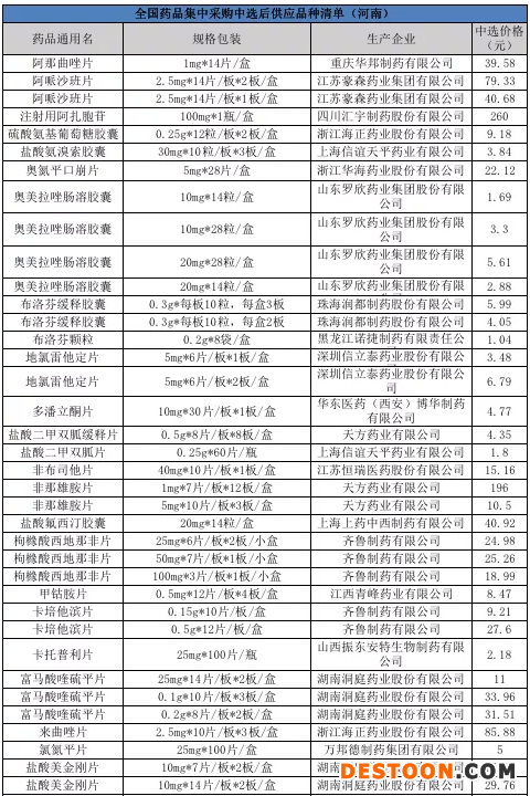執(zhí)行的藥品范圍包括國家聯(lián)采辦公布的《全國藥品集中采購中選后供應(yīng)品種清單(河南)》中明確的55個中選藥品及其供應(yīng)的85個品規(guī)。具體產(chǎn)品如下: