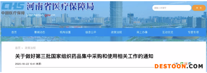 10月22日,河南省醫(yī)保局發(fā)布《關(guān)于做好第三批國家組織藥品集中采購和使用相關(guān)工作的通知》。